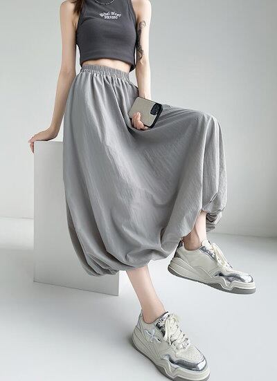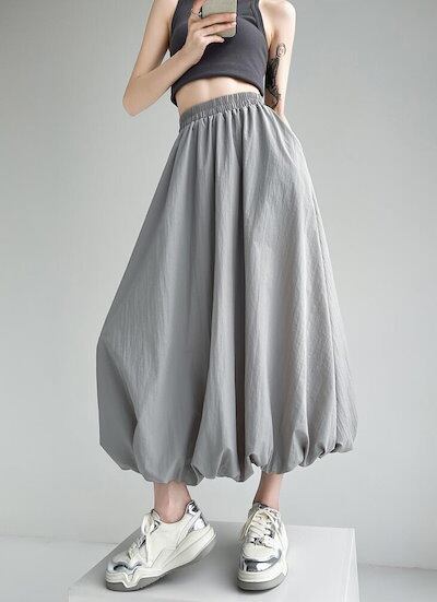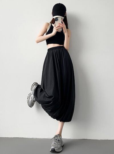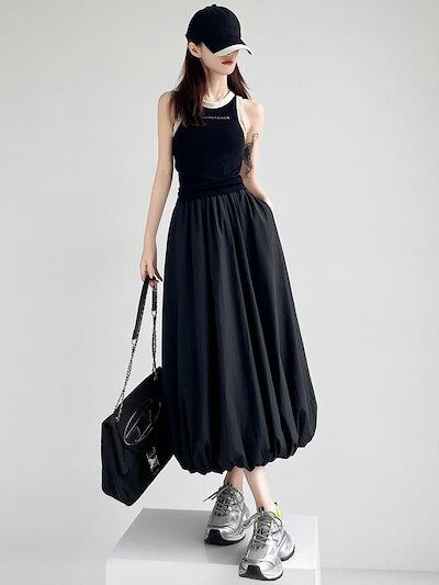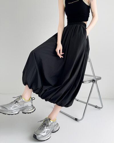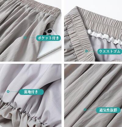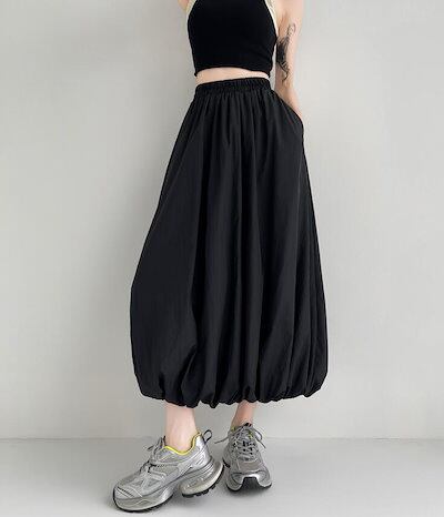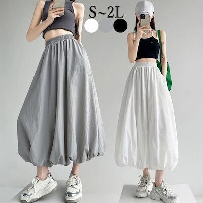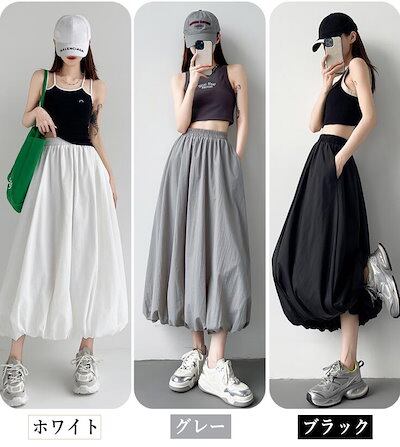 バルーンスカート コクーンスカート レディース プリーツ ロングスカート フレア タック ウエストゴム ポケット付き 裏地付き カジュアル 可愛い おしゃれ ボトムス S M L 2L