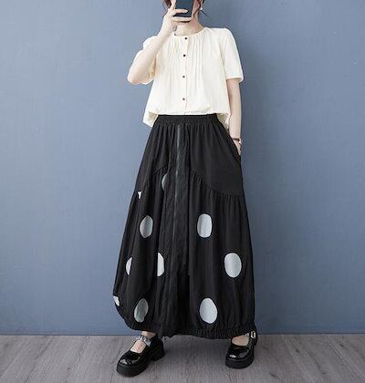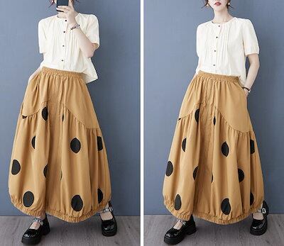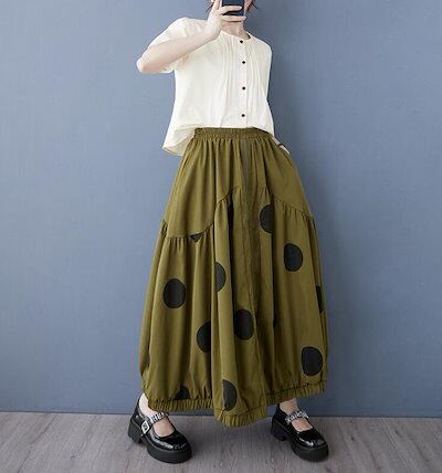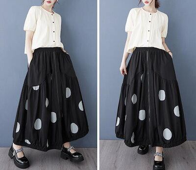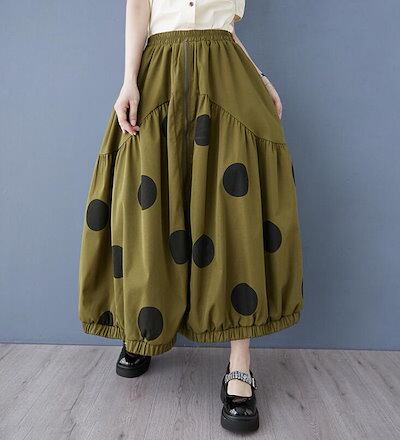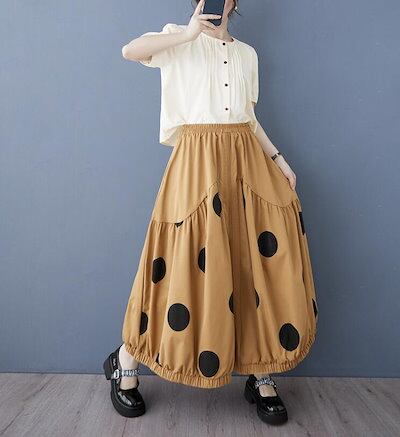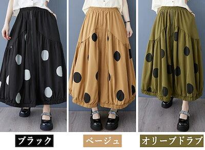 バルーンスカート コクーンスカート ギャザー フレア レディース ロングスカート 水玉 ウエストゴム Aライン カジュアル 可愛い おしゃれ ボトムス 春 夏