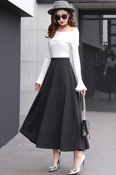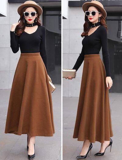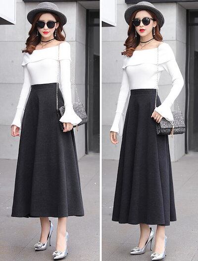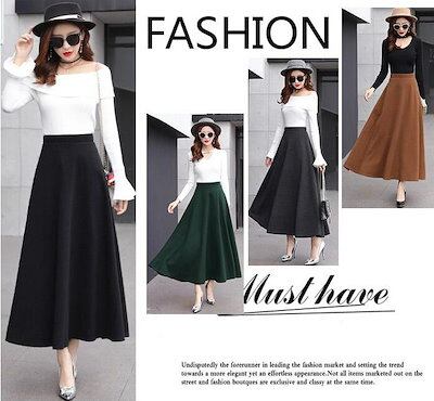 スカート フレアスカート フリルスカート ロング ミモレ丈 ハイウエスト レディース aライン 大きいサイズ 膝下 ウエストゴム 細見え カジュアル 春秋冬 S M L 2L 3L