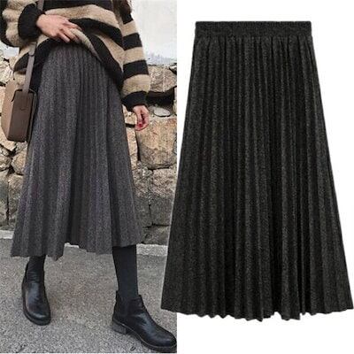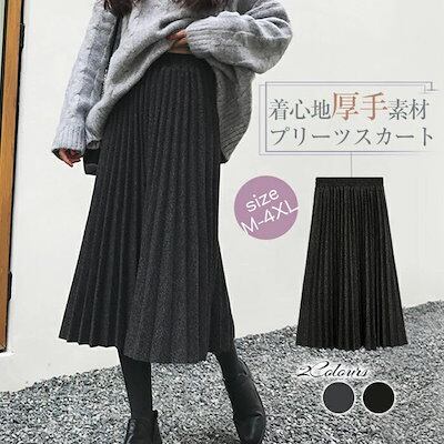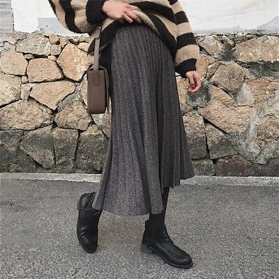 スカート ロング スカート無地 Aライン レディース ボトムス 膝丈 ロング丈 ロングスカート 秋 冬 ウエストゴム aライン プリーツスカート 大きいサイズ 体型カバー 着痩せ 通勤 OL ミモレ丈
