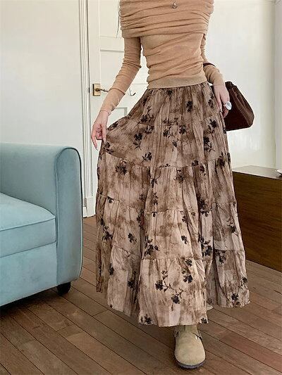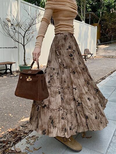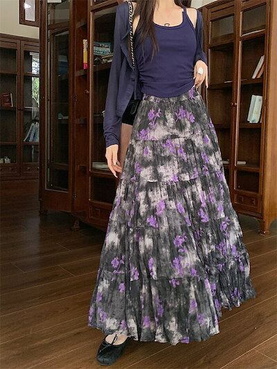 プリーツスカート スカート レディース 春夏 花柄スカート ロングスカート プリーツ 花柄 ロング丈 ウエストゴム Aライン フレア 裏地付き ボトムス カジュアル コーデ きれいめ フェミニン 可愛