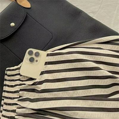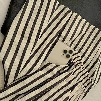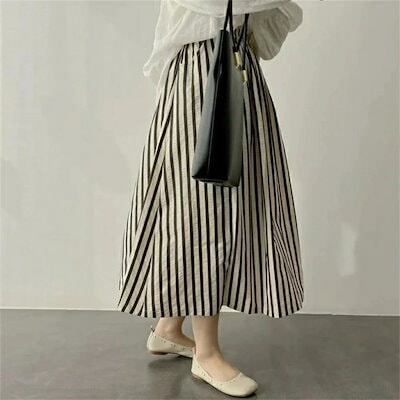 ロングスカート レディース きれいめ 春夏 ストライプ柄 スカート ポケット付き フレアスカート ミモレ丈スカート Aラインスカート 体型カバー フレア ゆったり ロング丈 ゆるっと ウエストゴム