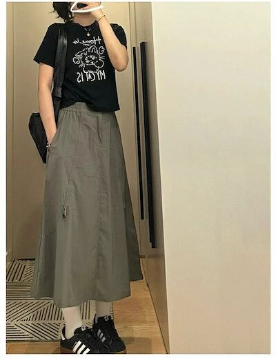 スカート ロング スカート Aライン レディース ボトムス ロング丈 春 夏 秋 ウエストゴム aライン 体型カバー 着痩せ 通勤 OL 無地 大きいサイズ おしゃれ シンプル カジュアル 大人 ゆっ