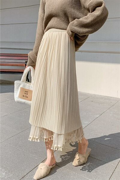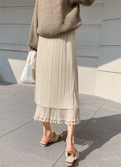 プリーツスカート スカート レディース 春夏 ロングスカート リバーシブル ロング丈 Aライン 裏地付き トレンド ウエストゴム ハイウエストゴム 楽ちん ボトムス ゆったり 体型カバー 着?せ 高見