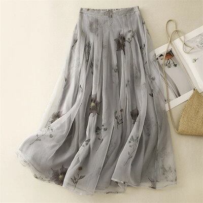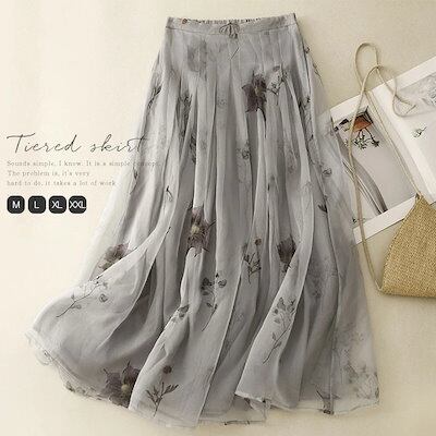 スカート レディース 春夏 ロングスカート ダブルスカート ギャザースカート 花柄 ギャザー ロング丈 ウエストゴム フレア Aライン ボトムス おしゃれ 着痩せ 大きいサイズ ゆったり カジュアル