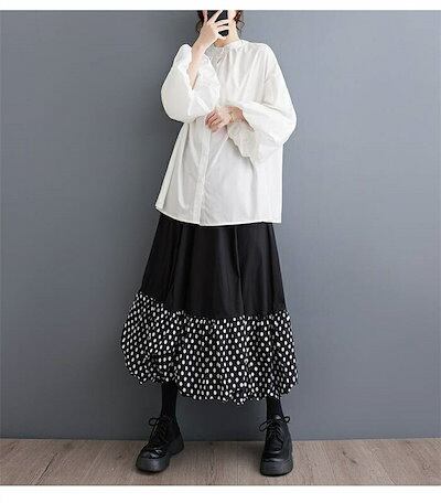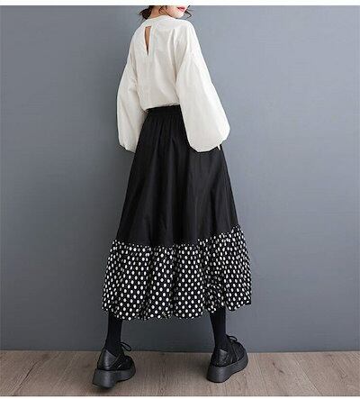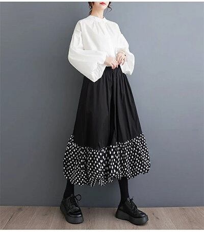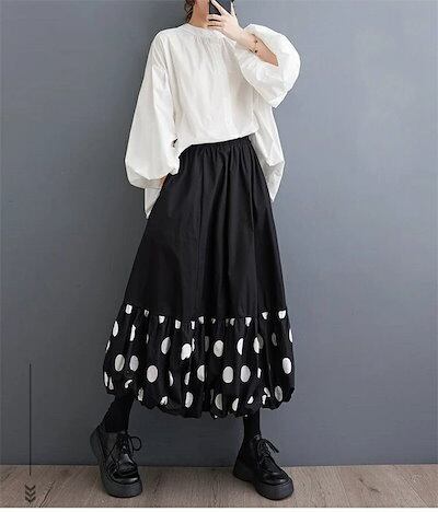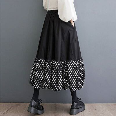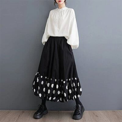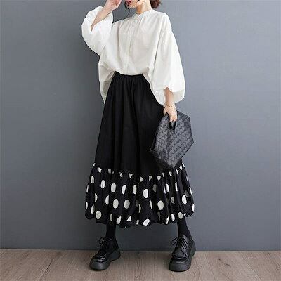 バルーンスカート ロングスカート レディース コクーンスカート ゆったり コクーン バルーン スカート ドット柄 aライン 春 夏 秋 ロング ウエストゴム ボトムス ゆる 体型カバー 総ゴム 美脚