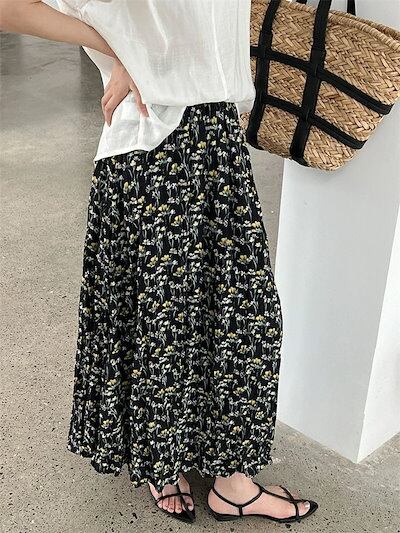 スカート 花柄 レディース 春夏 花柄スカート ロングスカート ロング丈 可愛い Aライン フレア 総柄 森ガール ウエストゴム ボトムス 体型カバー ゆったり カジュアル コーデ きれいめ 着痩せ