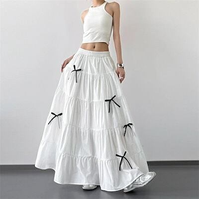 スカート Aラインスカート レディース 夏 ロングスカート ロング丈 ウエストゴム フレア 無地 可愛い ゆったり 体型カバー 大きいサイズ シンプル おしゃれ 可愛い トレンド フェミニン エレガン