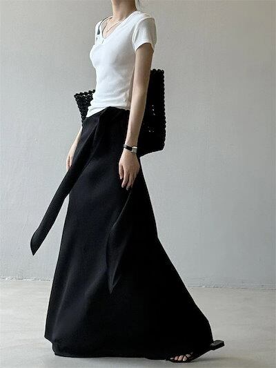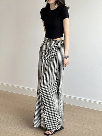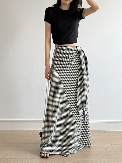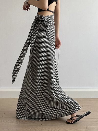 スカート レディース 夏 マキシスカート チェック柄 マキシ ウエストゴム ロングスカート ロング丈 無地 ブラック Aライン ボトムス 楽ちん ゆったり 体型カバー 着?せ リゾート きれいめ お洒
