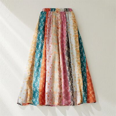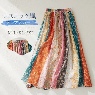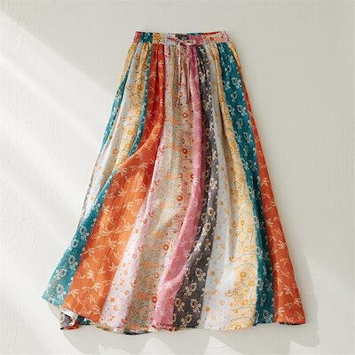 スカート リゾートスカート レディース 春夏 ロングスカート マルチカラー 切り替えスカート 花柄 切り替え 花柄 麻混 リネン ロング丈 リゾート ウエストゴム Aライン フレア ダブルスカート 切