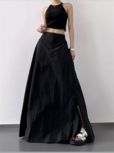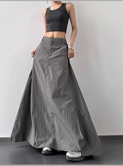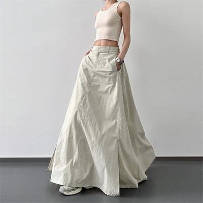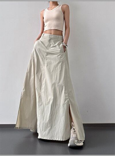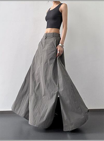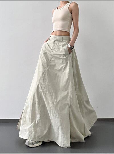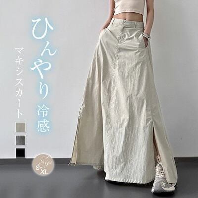 スカート UVカット ロング スカート マキシスカート ひんやり 冷感 レディース ボトムス 春 夏 Aライン フレアスカート スリット ウエストゴム 無地 薄手 軽量 落ち感 ふんわり ゆったり カ