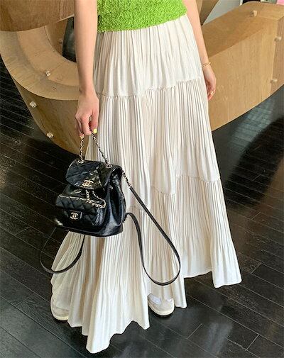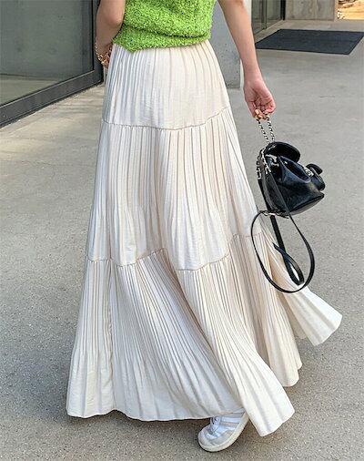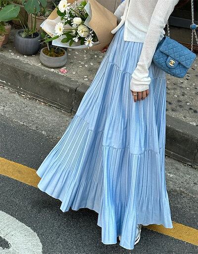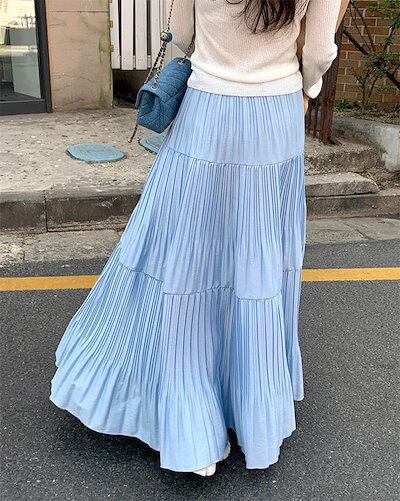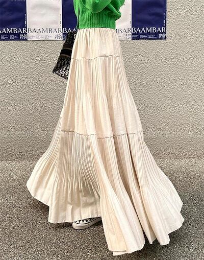 スカート ティアード プリーツ ロング レディース おしゃれ きれいめ ボトムス Aライン フレアスカート 春夏 秋 薄手 シンプル 無地 揺れる 透け感 涼しげ ウエストゴム お出かけ デート エレ