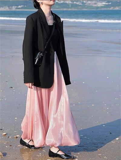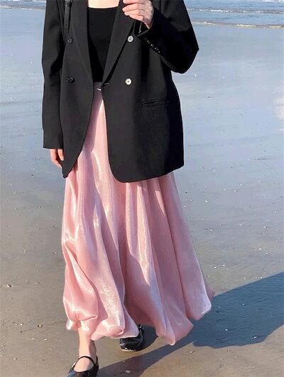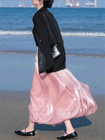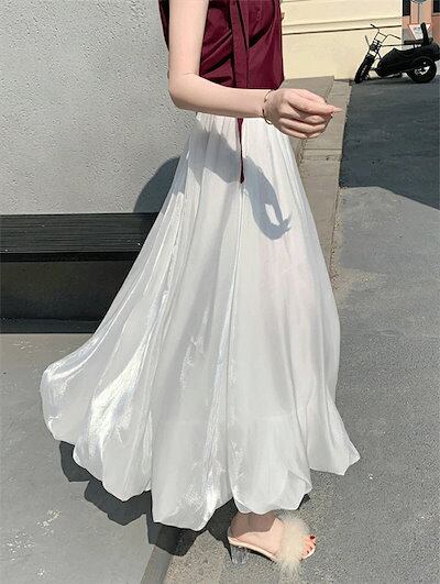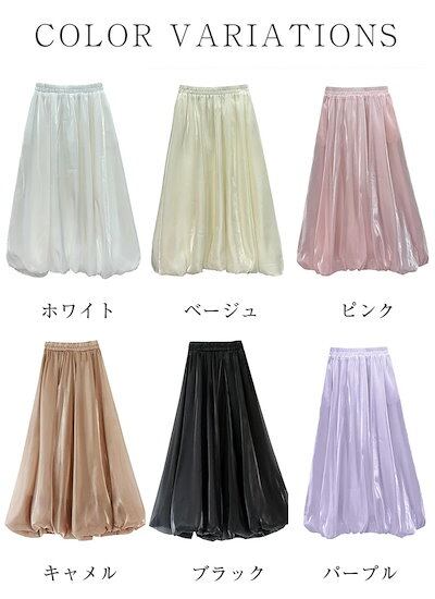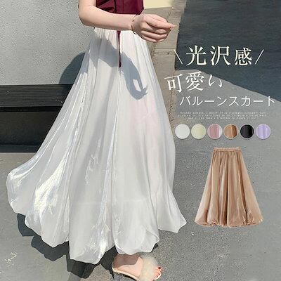 スカート 光沢感 バルーンスカート レディース 春夏 バルーン フレアスカート ロングスカート aライン ロング丈 ボトムス 可愛い ウエストゴム フレア ゆったり きれいめ 体型カバー 着?せ 美脚
