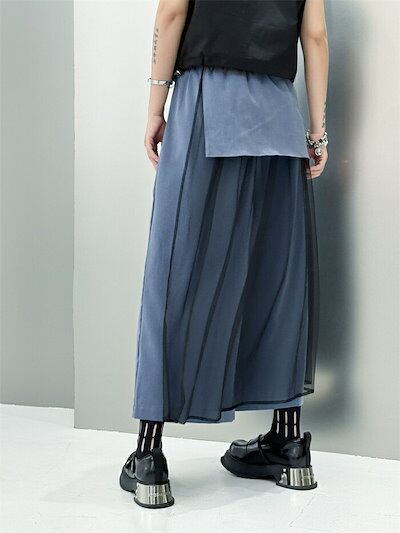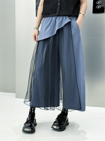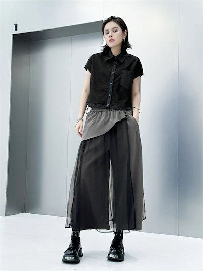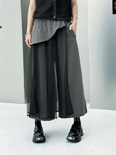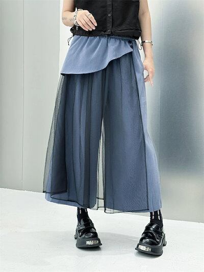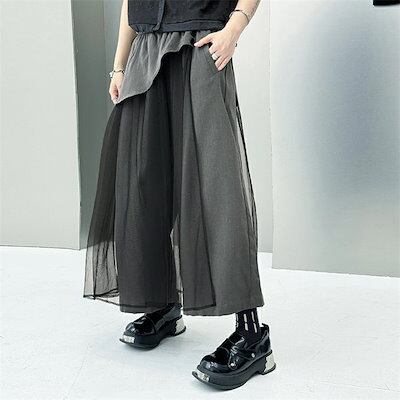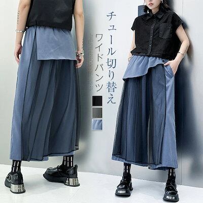 ワイドパンツ チュール スカート 春 夏 薄手 ロング パンツ ガウチョ レディース チュール 切り替え ボトムス きれいめ フレアパンツ ワイド ガウチョパンツ 美脚 パンツ ウエストゴム 無地 シ