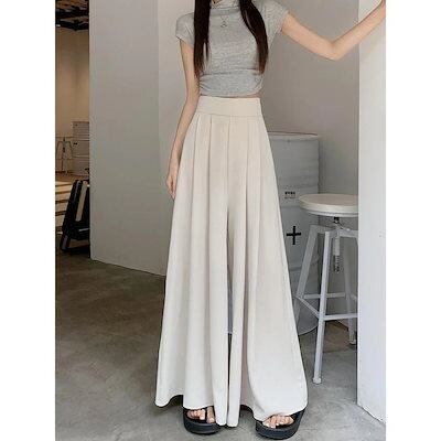 レディース ワイド パンツ 韓国 デザイン プリーツ パンツ スカート ハイ ウエスト ダウン カジュアル キュロット