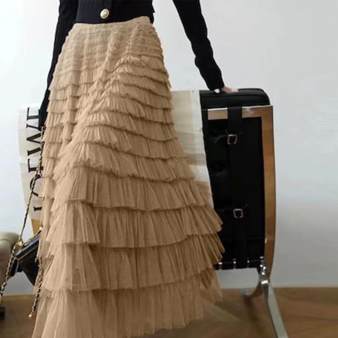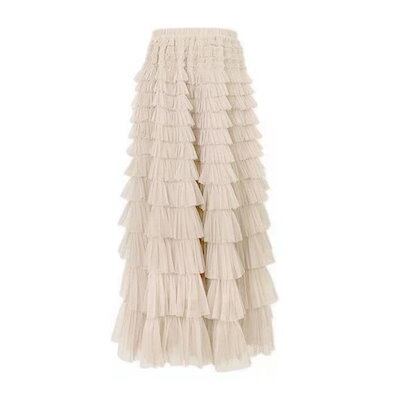 ティアードスカートチュールレディースロングスカートマキシ丈チュールスカート体型カバー大人可愛い結婚式パーティーきれいめエレガントグリーンブラック黒白20304050高見えゴムウエスト裏地付き