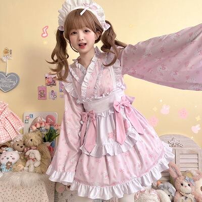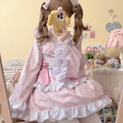 ロリータ 人気新作 jskキャミソールスカート 可愛い 二次元 ワンピース メイド 洋装 長袖 op日常 ケーキスカート 花嫁 茶会 韓国ファッション