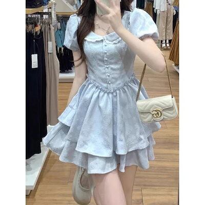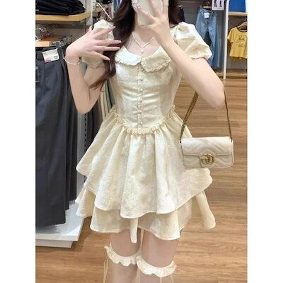 ロリータ 人気新作 ドレス 可愛らしい ポンポンスカート 百掛け ティーブレイクドレス 脚魅せミニスカート 韓国ファッション