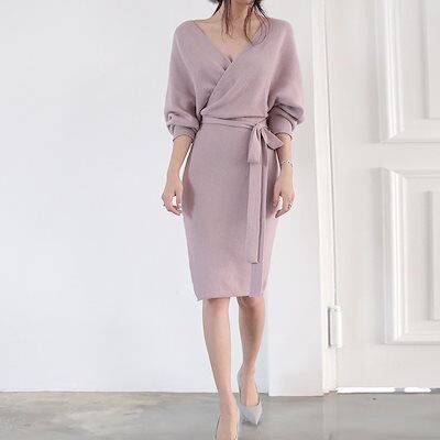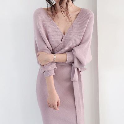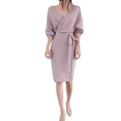 ニットドレス ワンピース パーティードレス 韓国ファッション セクシーなニットドレス2024新しい秋のファッション気質vネックストラップセータースカート
