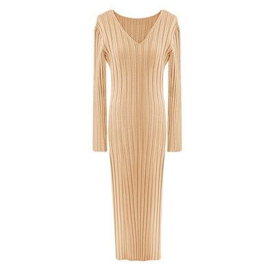 ニットドレス ワンピース パーティードレス 韓国ファッション 韓国無地 V ネックニットドレス女性 2024 秋冬新スタイルストラップウエストシンプルセータースカート