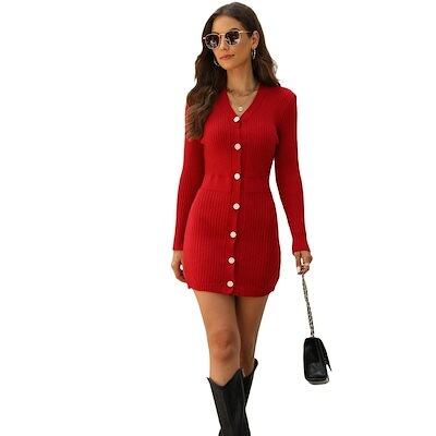ニットドレス ワンピース パーティードレス 韓国ファッション ドレス秋冬スリムカジュアルシングルブレストミドル丈ニットヒップドレス