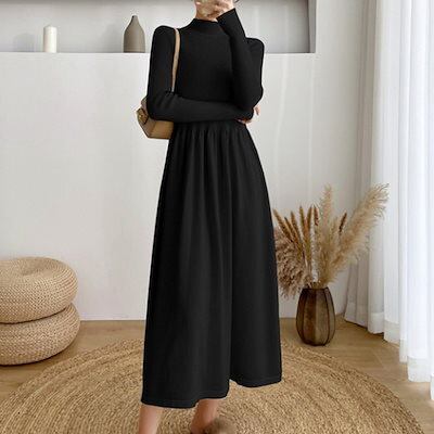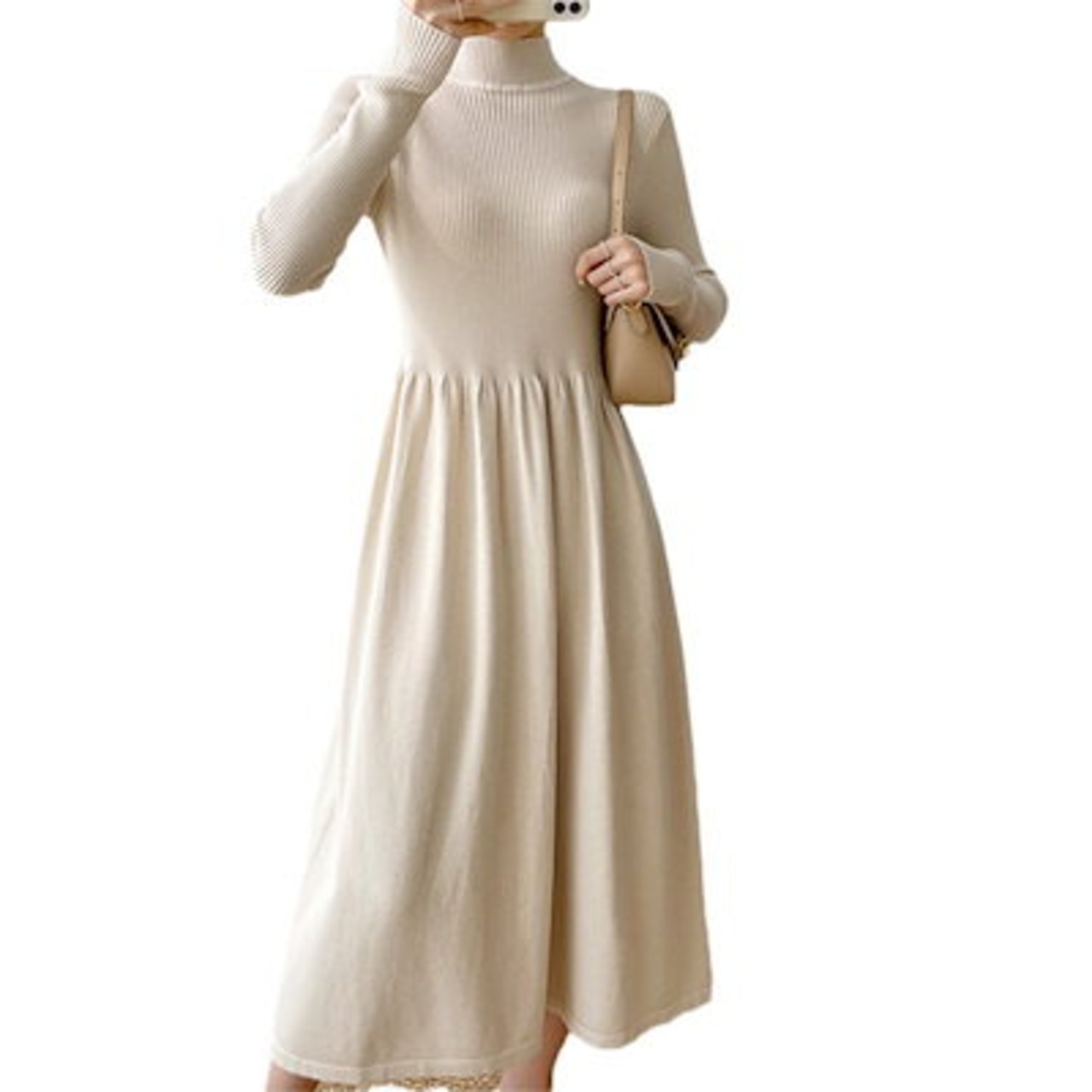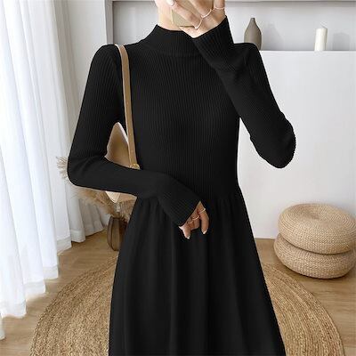 ニットドレス ワンピース パーティードレス 韓国ファッション 女性のためのエレガントなインナーニットドレス2024秋冬新作スリムフィットハーフタートルネックファッションセータードレス