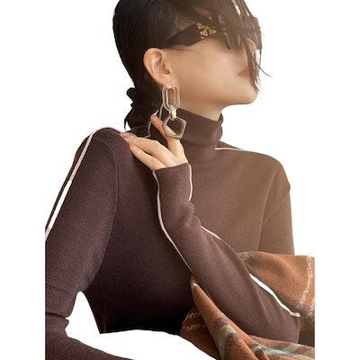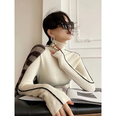 ベーシックニット ハイネック ニット ボトムシャツ ジャンパー ロングスリーブ スリムフィット トップス