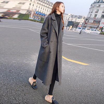 チェスターコート 冬アウター 韓国ファッション 秋冬 コート レディース ウール ミドル丈 厚手 ラシャコート ゆったり 無地 S-XXL展開