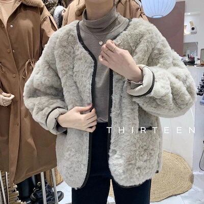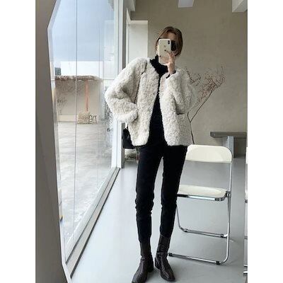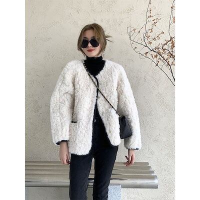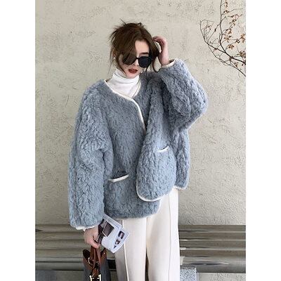 チェスターコート 冬アウター 韓国ファッション ヘイズブルー ラムズウール アウター レディース 秋冬 毛皮一体型 ショート トップス