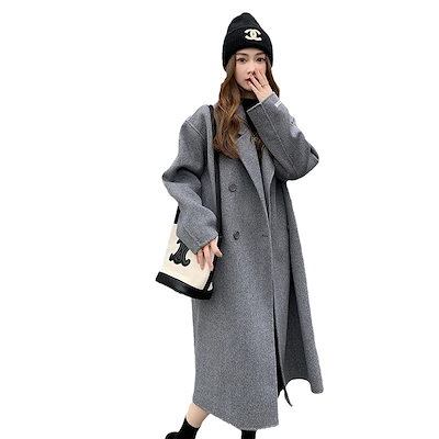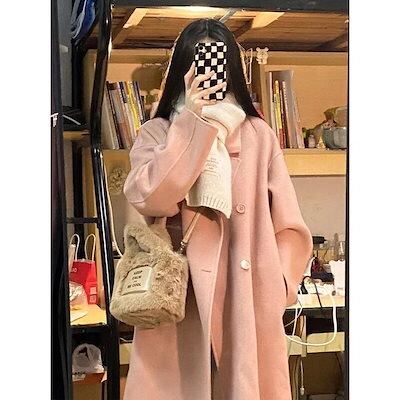 チェスターコート 冬アウター 女性用ピンクウールコート 秋冬新作韓国風ゆったりミドル丈 ウールコート 韓国ファッション