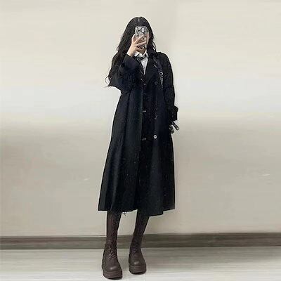 チェスターコート 冬アウター 韓国ファッション 高級感 ブラック トレンチコート レディース ミドル丈 小柄 chic コート アウター