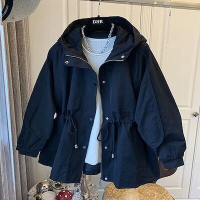 ジャケット 冬ジャケット 秋アウター シンプル!ノーカラーコート の広いレースアップの薄いミドル丈ウインドブレーカージャケットはボアで決まり/人気ボアアウター キルティングコート 冬アウター 春トレン