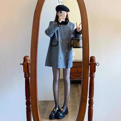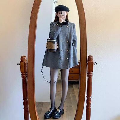 大人っぽチェスターコート 冬アウター ニッチなデザインのルーズでスリムなウールコート秋冬新作厚みのある暖かいウールコート 韓国ファッション