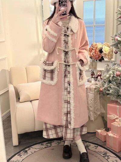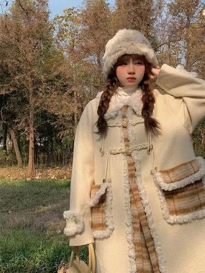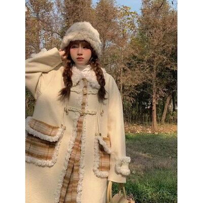 大人っぽチェスターコート 冬アウター ファッションデザインチェック柄スプライシングウールコート秋冬新入生スモールコート 韓国ファッション