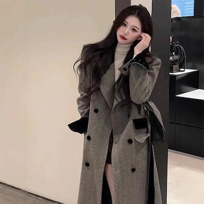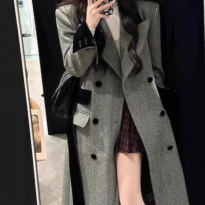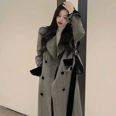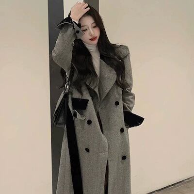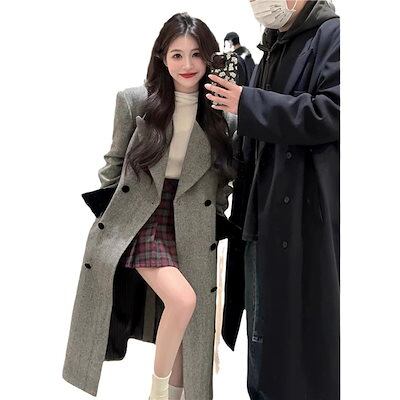 大人っぽチェスターコート 冬アウター グレーロングウールコートレディースウールコート秋冬sサイズ2024新スタイル厚手 韓国ファッション