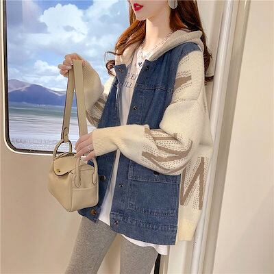 マウンテンパーカー 2024 新作 秋 ニット 切り替え デニムジャケット トレンチコート 長袖 防寒 セミロング丈 パーカー 保温 アウター スウェット ジャンパー チェスターコート コート