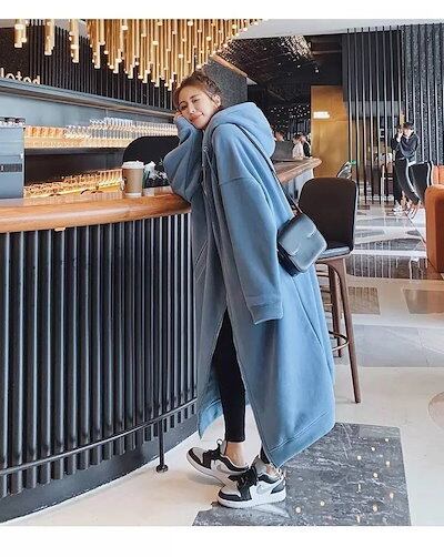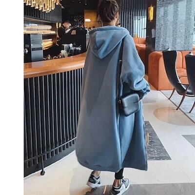 マウンテンパーカー 厚手 無地 パーカー 秋冬スウェットフードゆったり 長袖スウェットフーデ 膝下丈 ロング丈 ロンT 韓国ファッション