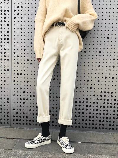 【2025再販限定】韓国デニムパンツ 春秋 レディース ワイドデニムパンツ 大きいサイズ パンツ ハイウエスト 美脚 ロングパンツ ストレッチ ロングパンツ ポケット付き ゆったり 厚手 暖かい 着痩