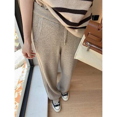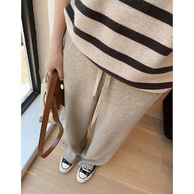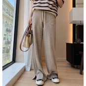 今年の流行 スリット ニットパンツ ワイドパンツ 2022 秋冬 新作 ハイウエスト ドレープ感 美脚 着痩せ モッピングパンツ スラックスパンツ