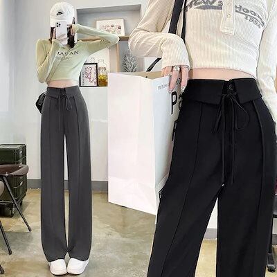 今年の流行 ワイドパンツ 高級感 垂れ感 百掛け ゆったり スーツズボン ハイウエスト スリミング 着痩せ モッピングパンツ スラックスパンツ