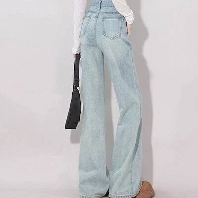 【2025新作】人気沸騰 ストレート デニムパンツ ハイウエスト 着やせ ゆったり ワイドパンツ おしゃれ 美脚効果 脚長効果 ロングパンツ 大人用 子供用 ジーンズ レディース