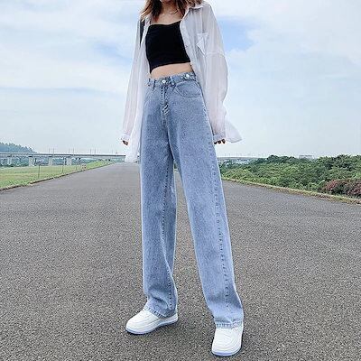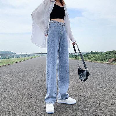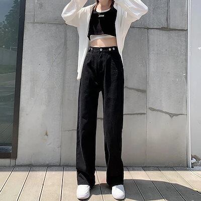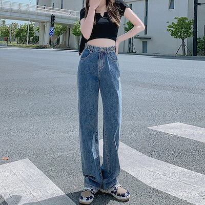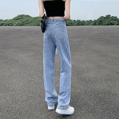 【2025新作】人気沸騰 ストレート デニムパンツ ハイウエスト 着やせ ゆったり ワイドパンツ おしゃれ 美脚効果 脚長効果 ロングパンツ 大人用 子供用 ジーンズ レディース201
