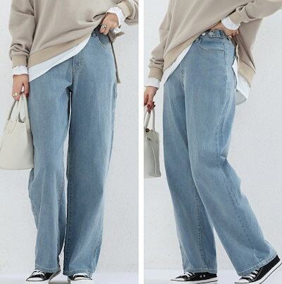デニムパンツ レディース ファッション ズボン ボトムス 長ズボン ジーンズ デニム ウォッシュド バギージーンズ ハイウエスト シンプル ワイドパンツ レトロ 綺麗 ストレッチ 気品 ジーンズ