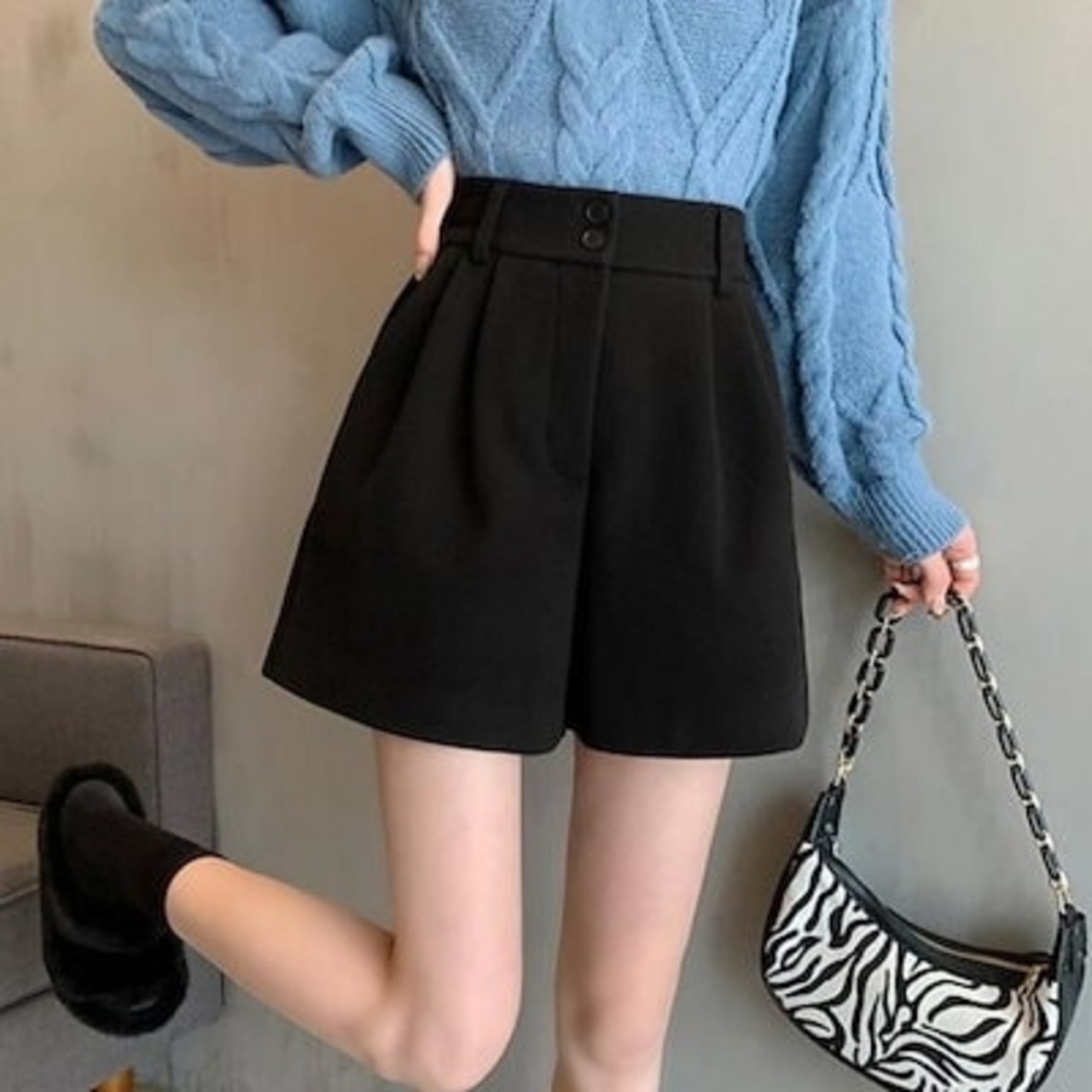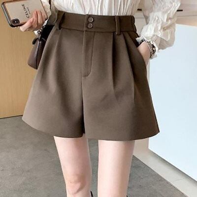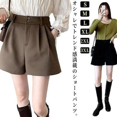 ハイウエスト ウエストゴム ワイドパンツ オフィス ショーパン ハーフパンツ ショートパンツ レディース カジュアル シンプル 無地半ズボン 膝上 ボトムス 着やせ 春 秋 冬 S M L 2XL 3