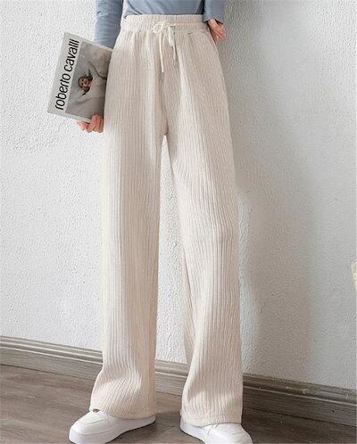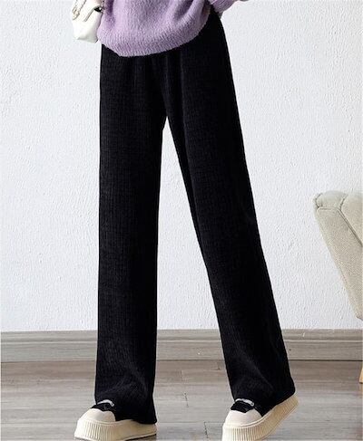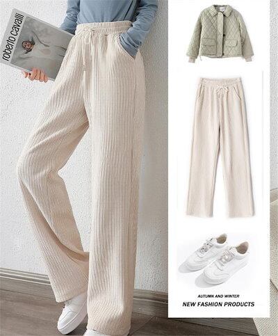 新品 快適である 秋冬 厚手 ワイドレッグパンツ ハイウエスト ストレートレッグパンツ カジュアル