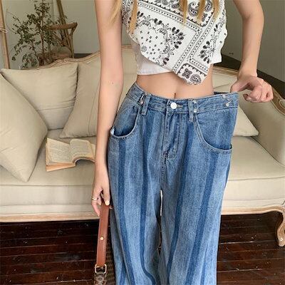 早い者勝ち ストレートレッグ スリム ワイドパンツ ハイウエスト ロングパンツ ジーンズ