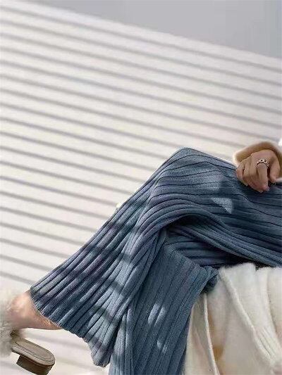早い者勝ち ニット ワイドパンツ ハイウエスト ストレートレッグパンツ スリム