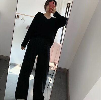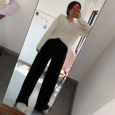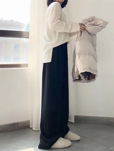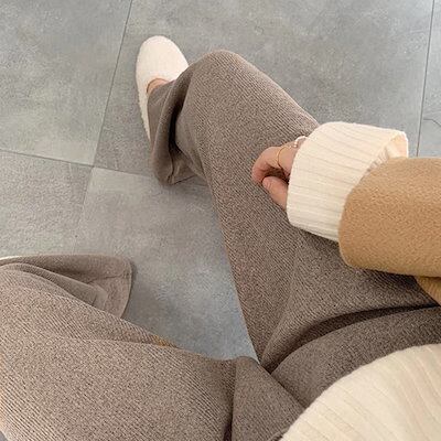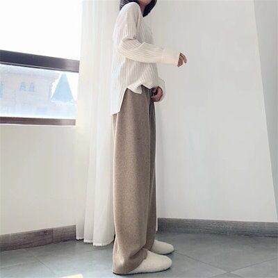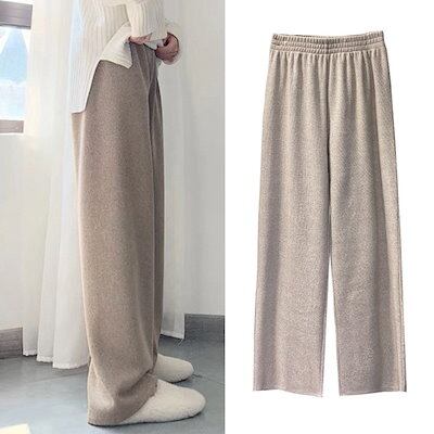 激安セール ハイウエスト ドレープ ストレート ニットパンツ ワイドパンツ 学生 ロングパンツ