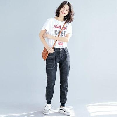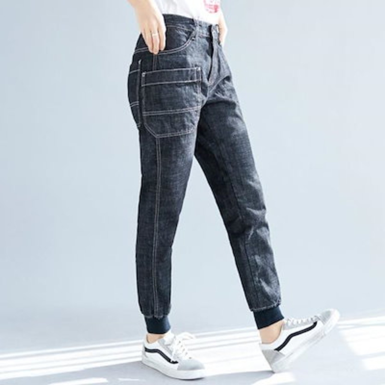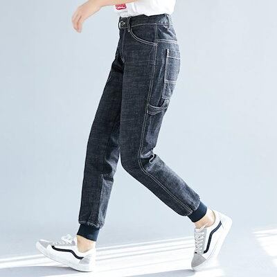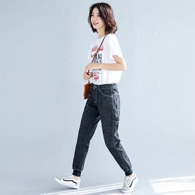 デニム レディース ジーンズ 裾リブパンツ テーパード クロップド 上品 大人綿100%