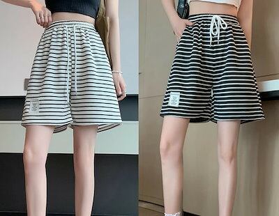 期間限定オファー 全2色 ショートパンツ ショーパン 体型カバー 着痩せ ボーダー柄 【大きいサイズあり】【大きいサイズ レディース 春夏 デニム ハイウエスト ハーフパンツ パンツ ショーパン ス